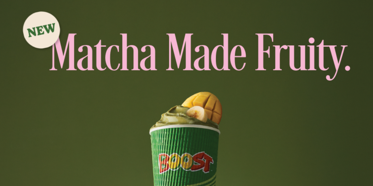 Boost’s take on matcha is officially here 🍵 Available today, each drink pairs smooth matcha with …
